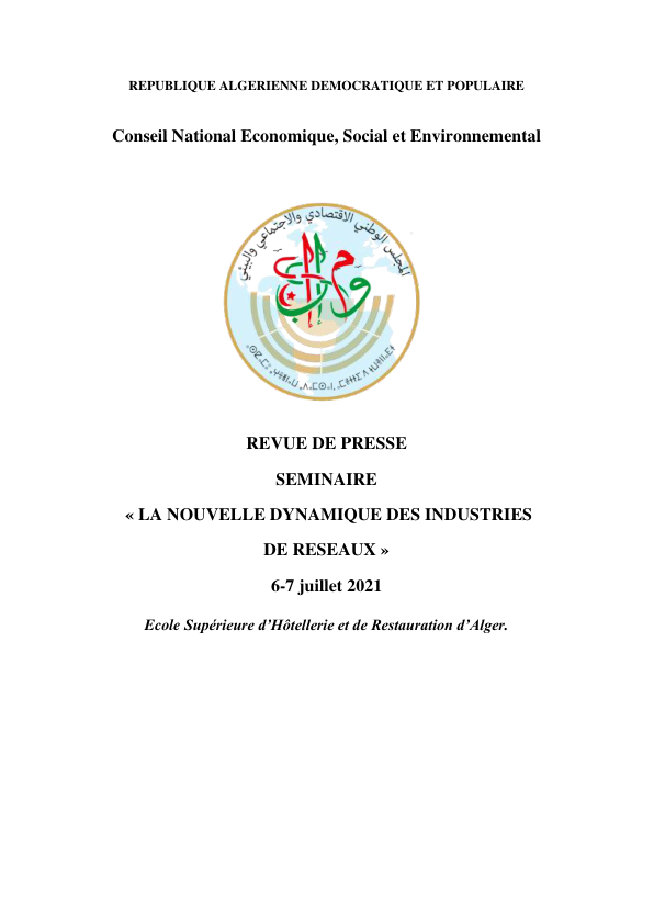المجلس الوطني الاقتصادي الاجتماعي و البيئي Conseil National Economique, Social et Environnemental المجلس الوطني الاقتصادي والاجتماعي والبيئي République Algérienne Démocratique et Populaire Conseil National Economique, Social et Environnemental المجلس الوطني الاقتصادي والاجتماعي والبيئي الجمهورية الجزائرية الديمقراطية الشعبية