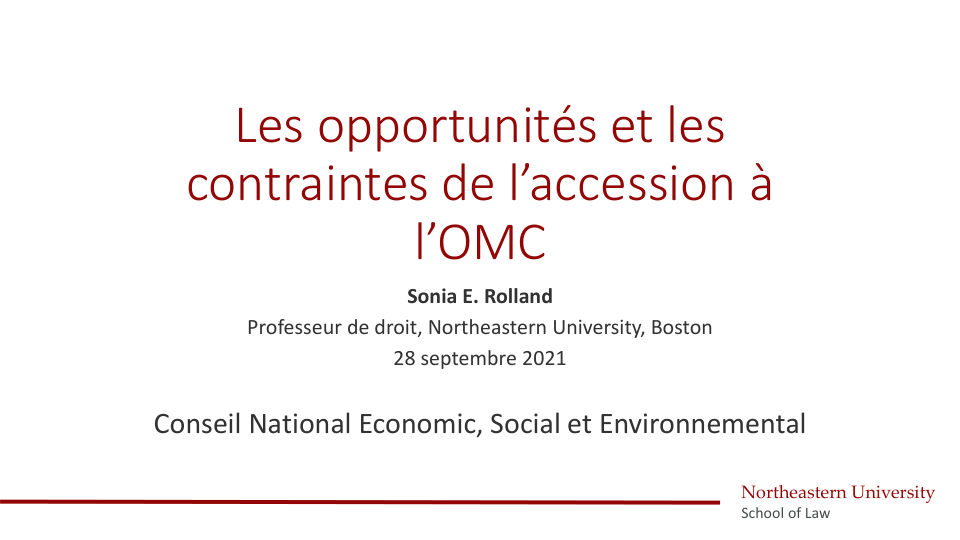 نظم المجلس الاقتصادي والاجتماعي والبيئي (CNESE) في 12 أكتوبر 2021 اجتماعًا بعنوان «الجزائر ومنظمة التجارة العالمية: أي مستقبل ؟» في المدرسة العليا للحماية والمطاعم (ESHRA) في عين بنيان الجزائر العاصمة. وقد شهد هذا الاجتماع، الذي أتاح للخبراء الوطنيين والدوليين مناقشة القضايا المتعلقة بانضمام الجزائر إلى منظمة التجارة العالمية وإصلاحات النظام التجاري المتعدد الأطراف التي ينظر فيها عدد كبير من البلدان الأعضاء، مشاركة العديد من الجهات الفاعلة الحكومية وغير الحكومية، التي تمثل القطاع الخاص وأرباب العمل والمجتمع المدني ككل.