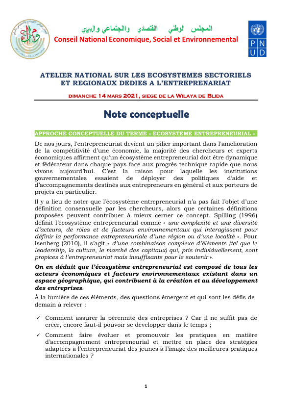 Atelier national sur les écosystèmes séctoriels et régionaux dédies à l'entreprenariat
